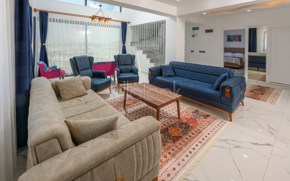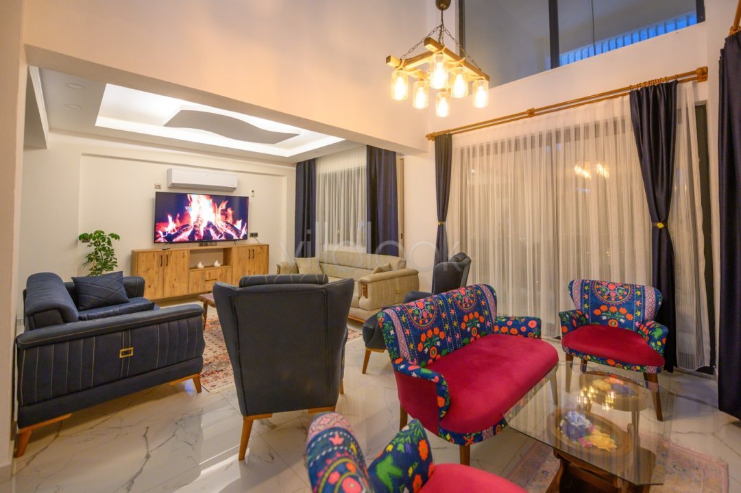 Villamızın içerisinde 6 yatak odası ve 6 wc-duşimkanı bulunmaktadır. Giriş katında mutfak ve yatak odası yer alırken yatakodasında bir adet çift kişilik yatak, wc-duş, klima mevcuttur. Birinci kattasalon ve çift kişilik yatak odası yer almaktadır. Yatak odasında çift kişilikyatak, wc-duş, klima bulunmaktadır. İkinci katında sauna ve iki yatak odasımevcuttur. Bir yatak odasında iki tek kişilik yatak, wc-duş, klima bulunur.İkinci yatak odasında ise çift kişilik yatak, wc-duş ve klima bulunmaktadır.Üçüncü katında bir yatak odası yer alır. İçerisinde wc-duş, klima ve jakuzimevcuttur.