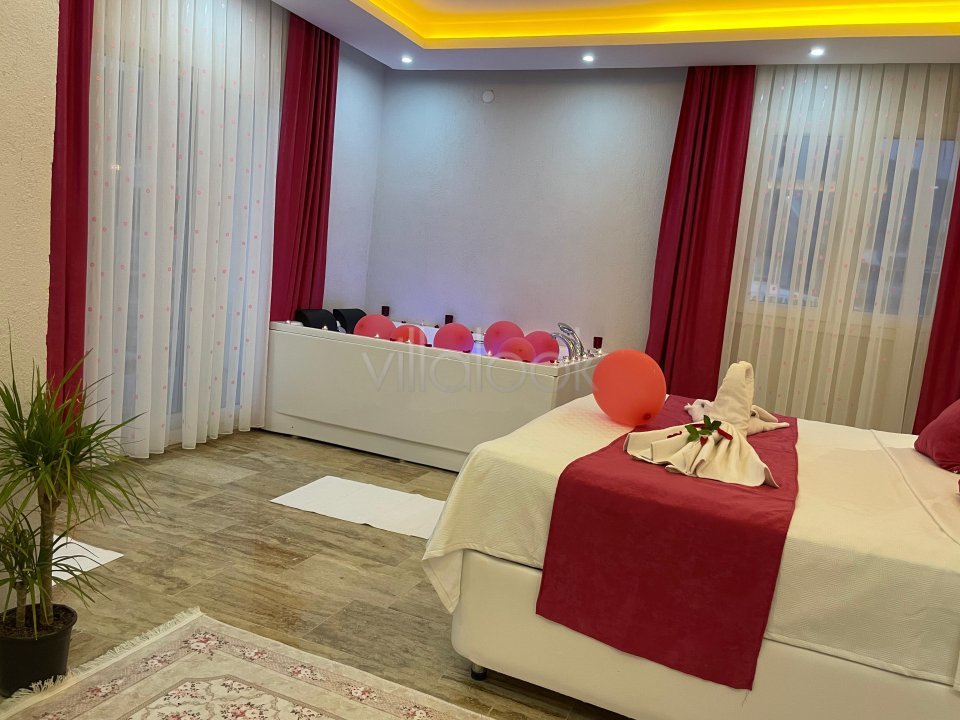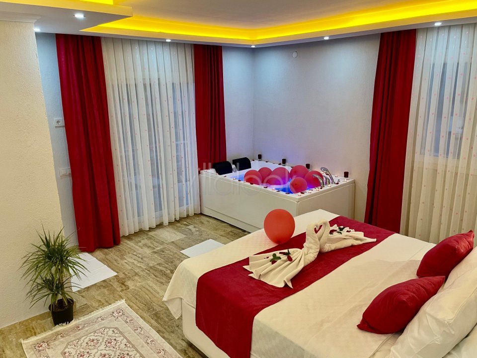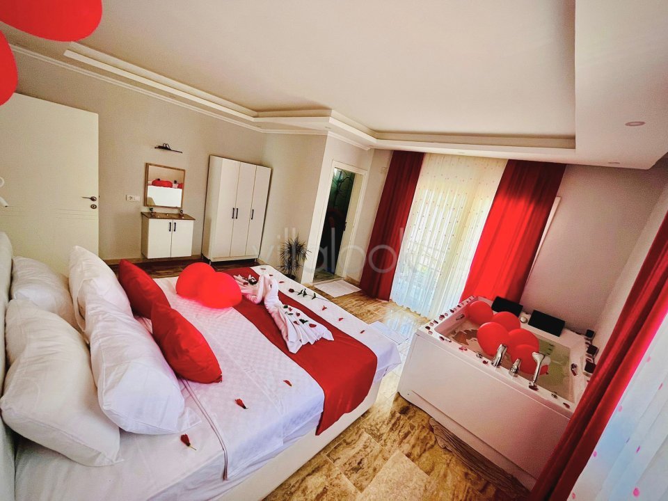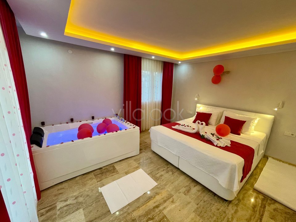 Villa Suit Aybars şıklığı ve konforuyla öne çıkan bir tatilkaçamağı sunuyor. Korunaklı havuzu ve jakuzisiyle hem dinlendirici hem dekeyifli bir atmosfer yaratır. Modern tasarımı ve yüksek kaliteye sahip içmekanlarıyla, hem romantik bir tatil hem de huzurlu bir kaçamak için ideal birseçenektir. Merkezi konumda bulunan ve çevresindeki tüm turistik noktalarakolay erişim sağlar, böylece misafirlerine gezilecek yerler açısından da büyükbir avantaj sunar. 1+1 balayı villası olarak tasarlanmış olan Suit Aybars özellikle yeni evli çiftler için kusursuz birtatil deneyimi vaat eder. Yanında bulunan Suit Ayça , benzer özelliklere sahipolup, yakın konumda başka bir konaklama seçeneği sunar. Bu iki suit, birbirinitamamlayıcı nitelikte olup, misafirlerine özel bir tatil deneyimi sağlar. Hemlüks hem de rahat bir ortam arayanlar için mükemmeldir.Sağlanan Hizmetler