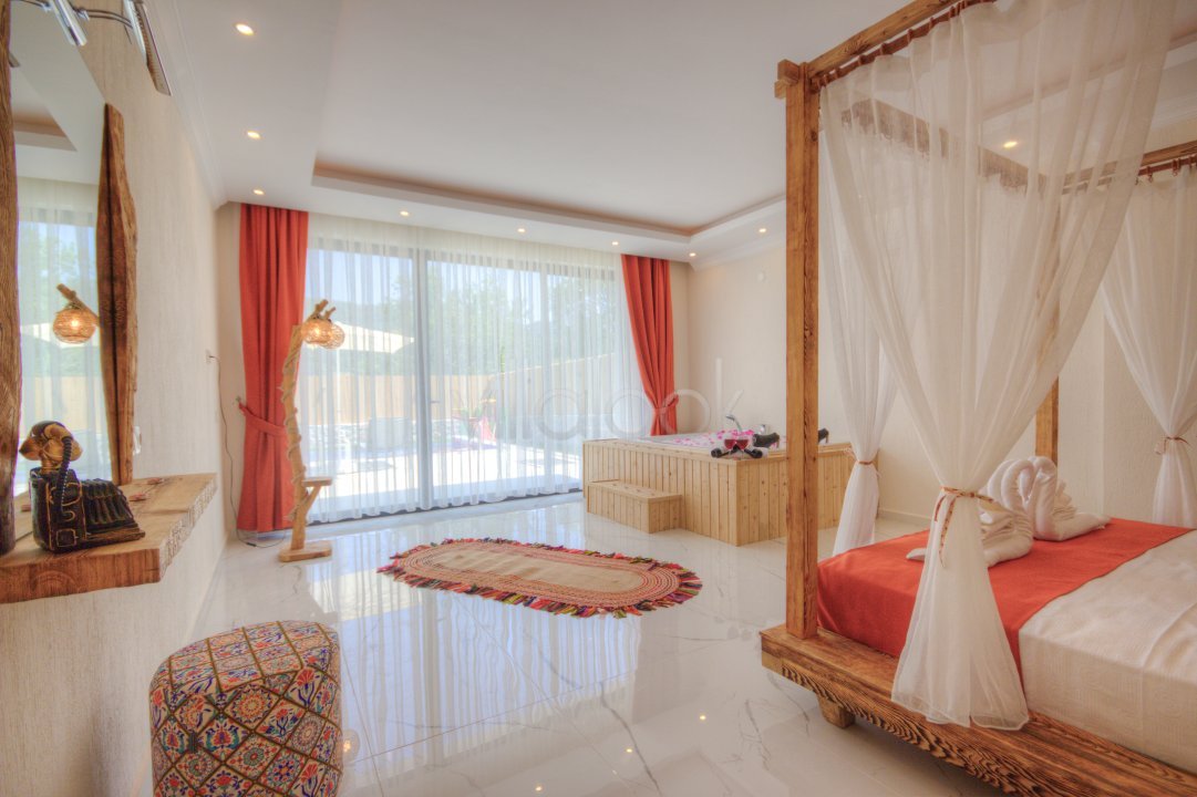 Modern mimari ile tasarlanmış olan villanın yatak odalarından birinde jakuzi bulunmaktadır. Mahremiyetine önem veren misafirler için uygun yapısı ve sunduğu olanaklarla Villa İdil Sarıbelen, doğa içerisinde huzurlu ve keyifli bir tatil geçirmek isteyenler için mükemmel bir seçenektir.