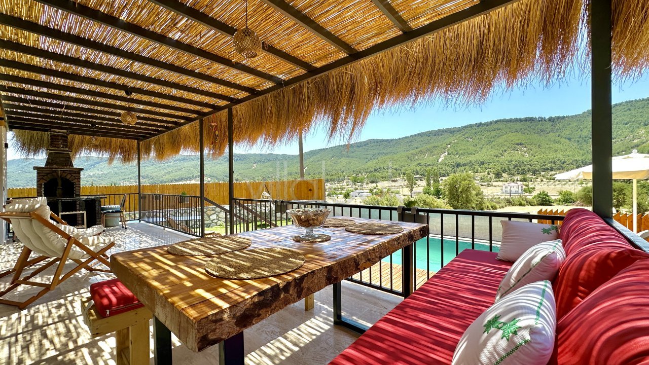 Doğaiçerisinde yer alan villamızda huzurlu bir tatil geçirebilirsiniz. Havuz vehavuz terası korunaklı olup dışarıdan gözükmemektedir. Geniş havuz ve havuzterası sayesinde keyifli bir tatil sizleri beklemektedir.