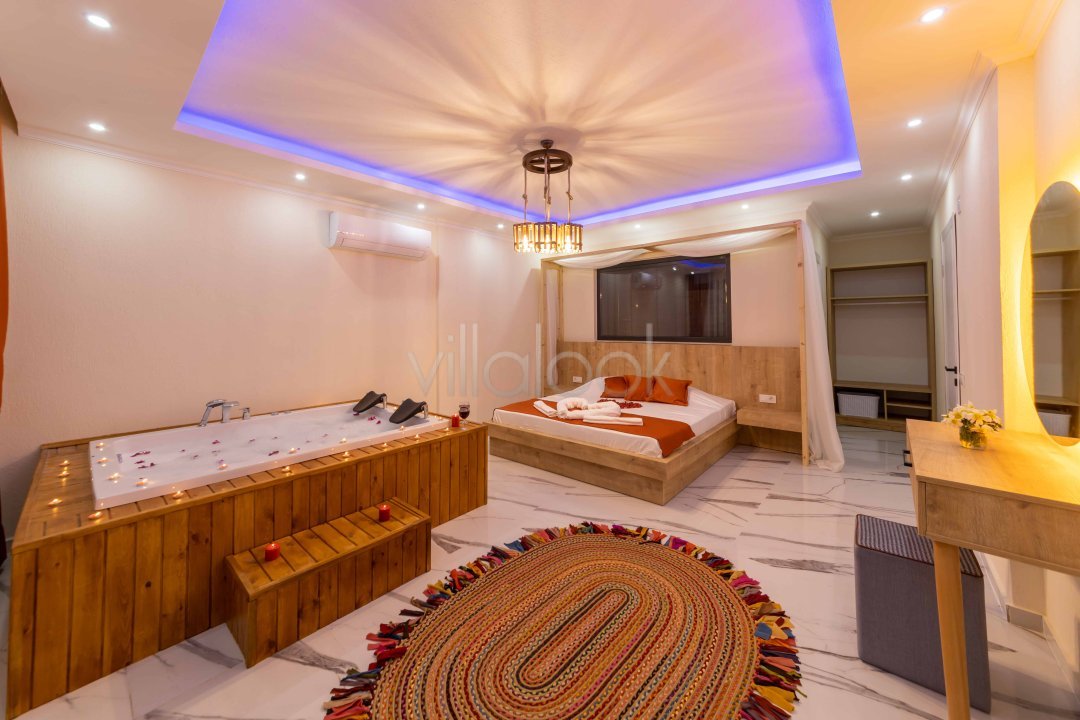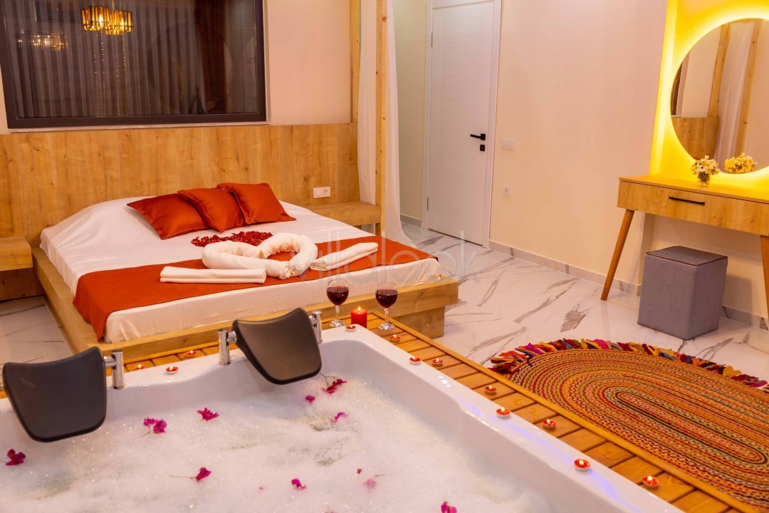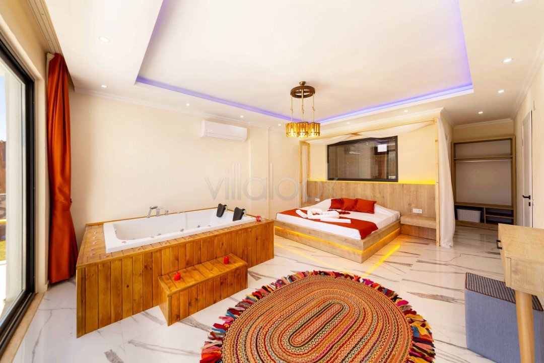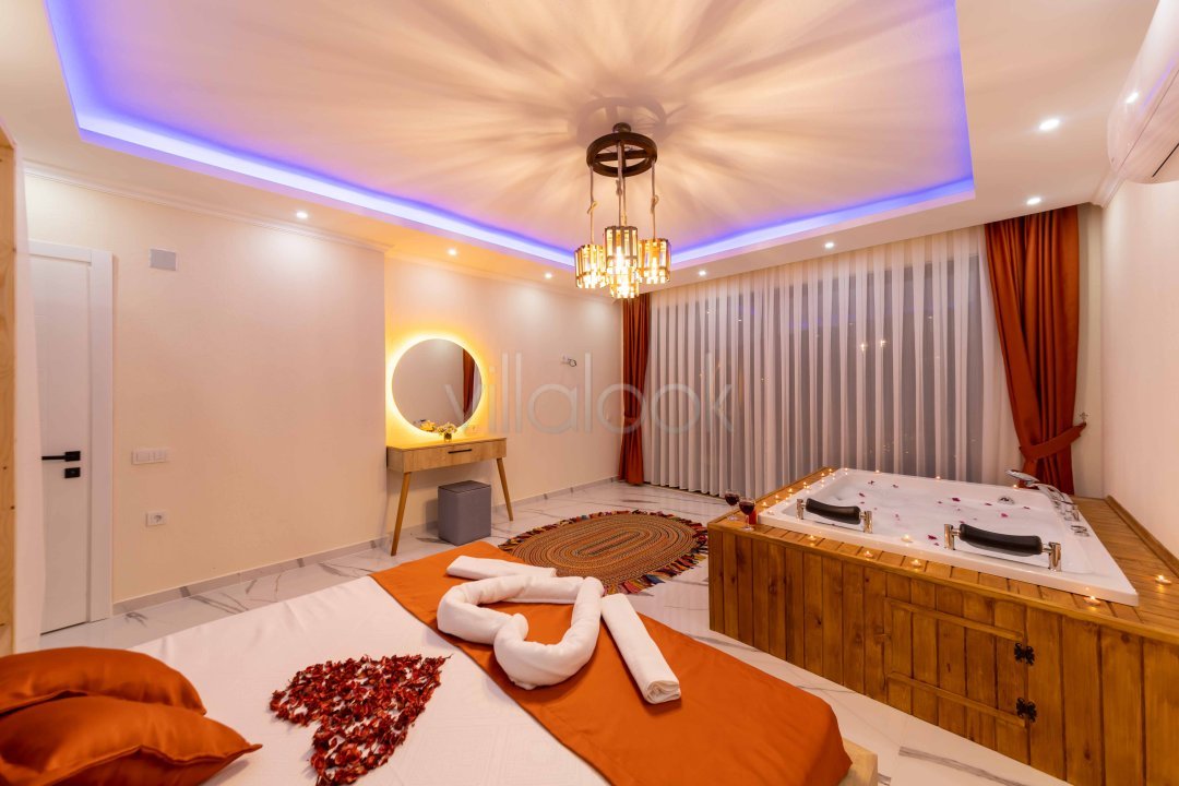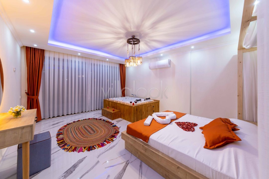 1.Yatak Odası: 1 çift kişilik yatak, klima, komodin, elbise dolabı, jakuzi, banyo,