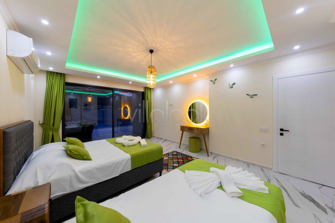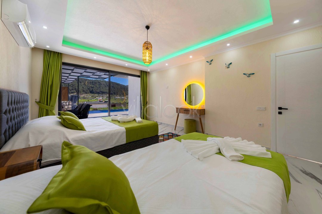 2.Yatak Odası: 2 tek kişilik yatak, klima, komodin, elbise dolabı, banyo,