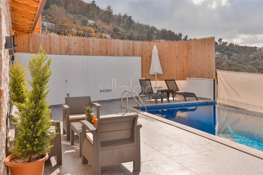 1 yatak odası, 1 banyo tuvalet bulunan villamız 2 kişilik konaklamakapasitesine sahiptir.28 m2 tam korunaklı özel havuzu, geniş çimlendirilmişyeşil alana sahip bahçesi, bahçe yemek masası, barbekü, şezlong ve salıncakgibi imkanlar bulunmaktadır. Ebeveyn odasında yer alan jakuzi de tüm stres veyorgunluğunuzu arkanızda bırakacağınız villamız sıra dışı bir tatil deneyimiiçin özenle tasarlandı.