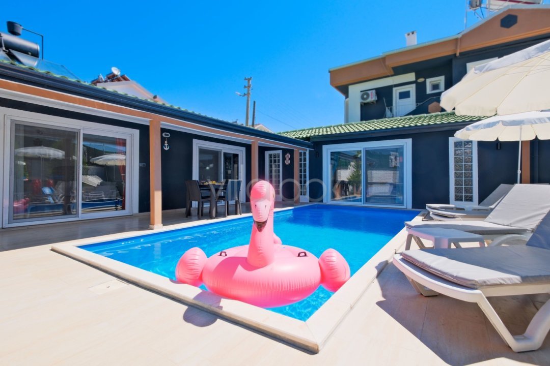 VİLLA AREL 2 Villa Arel 2, Muğla/Fethiye,Çalış bölgesinde yer almaktadır, 4 kişi konaklama kapasitesine sahiptir. Toplutaşımaya sadece 50 m. Mesafededir. Villa Arel 2kendine ait özel yüzme havuzu, havuzbaşı jakuzisi ile sevdiklerinizle güzel bir tatil keyfi yaşamanızısağlamaktadır. Villamız Çalış Plajı’na 3 km mesafedir. 1.Yatak odası : Çift kişilik yatak, elbise dolabı, komodin klima, banyo (ortak)bulunmaktadır. SağlananHizmetler Villa giriş günü sizden hasar depozitosu alınacaktır. Bu ücret çıkışyapacağınız saatten 10 dakika önce yapılacak olan genel kontrolde herhangi biraksaklık veya hasar olmaması durumunda tarafınıza iade edilir.