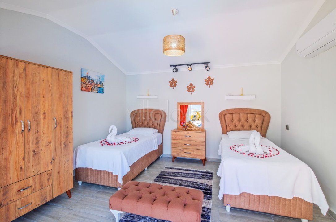 2.Yatak odası : 2 tek kişilik yatak, elbise dolabı, komodin, klima, banyo(ortak) bulunmaktadır.