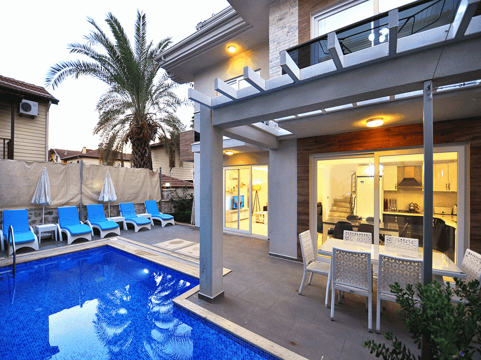 VillaEkstraları : Merkezi Konum, İnternet,Bebek park yatağı, MamaSandalyesi, Mangal, Bahçe duş, Süit 4 yatak odası 4 Banyo + 1 WC Lavabo,Araçsız tatil keyfi, 3. Etap sahil kenarına, Süpermarkete ve dolmuş durağınayürüme mesafesi, ferah kullanım alanları ve Çalış sahiline araçla 5 dakikamesafede, Fethiye 3. Etap sahil bandına 250 -300 mt mesafede.