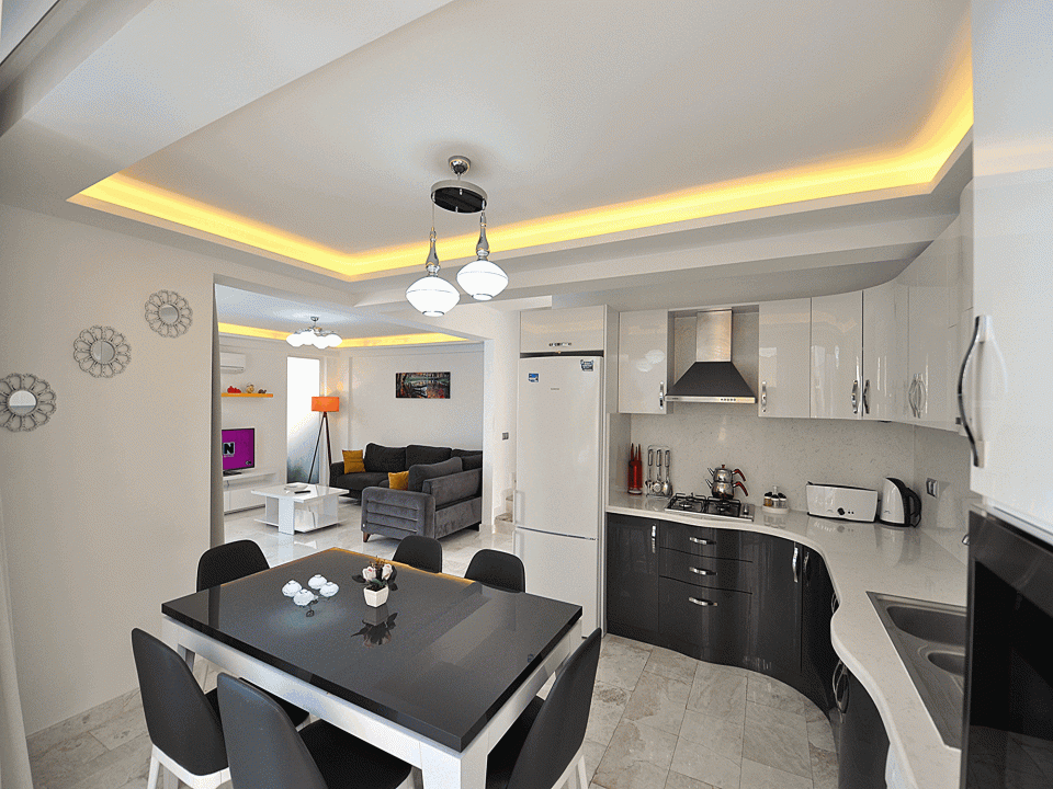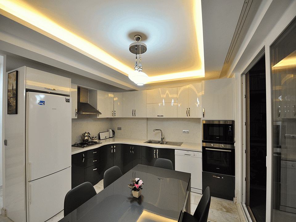 Detayları: Buzdolabı, Bulaşık Makinesi, Fırın,4′lü ocak , Mikrodalga fırın, 8 kişilik yemek takımı, Su ısıtıcı,Tava, Tencere, çatal bıçak vb.