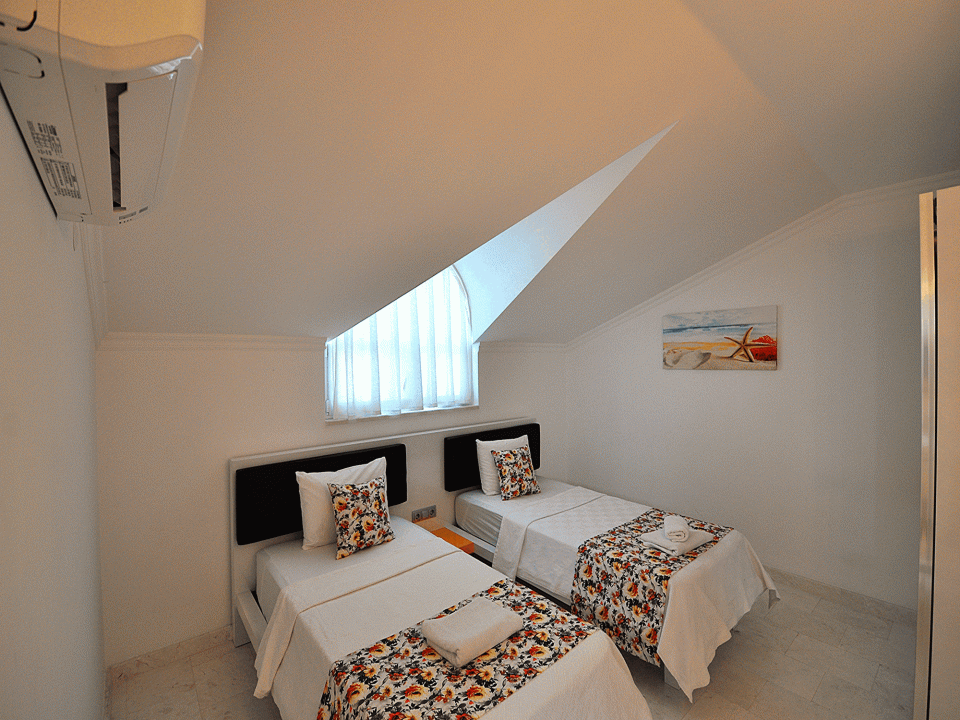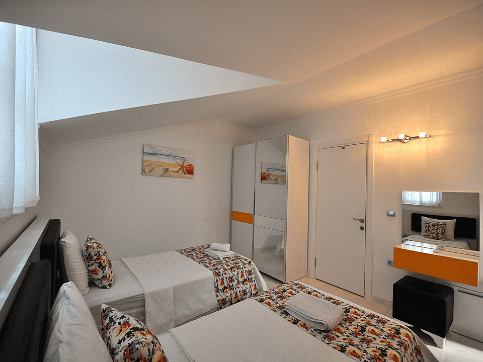 Detayları: 2 Adet Tek kişilik yatak, Komodin,Klima, Elbise dolabı, Banyo ve makyaj masası bulunmaktadır.