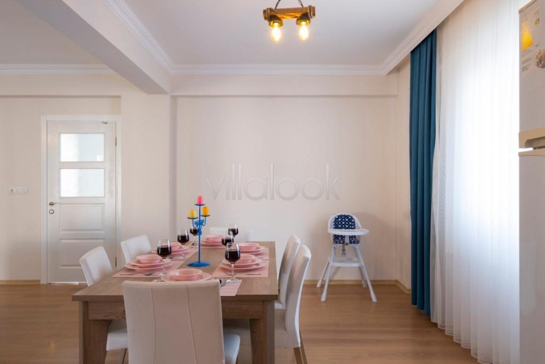 Evimizde 2 yatak odası bulunmaktadır. Birinci yatak odası içerisinde bir adet çift kişilik yatak ve klima; ikinci yatak odası içerisinde ise iki adet tek kişilik yatak ve klima yer almaktadır. Ortak alan da ise salon-mutfak, klima, WC-duş ve TV yer almaktadır.