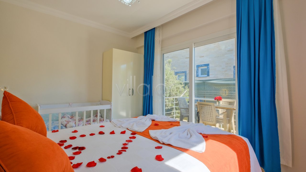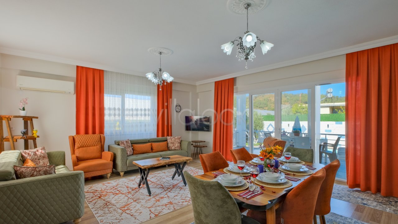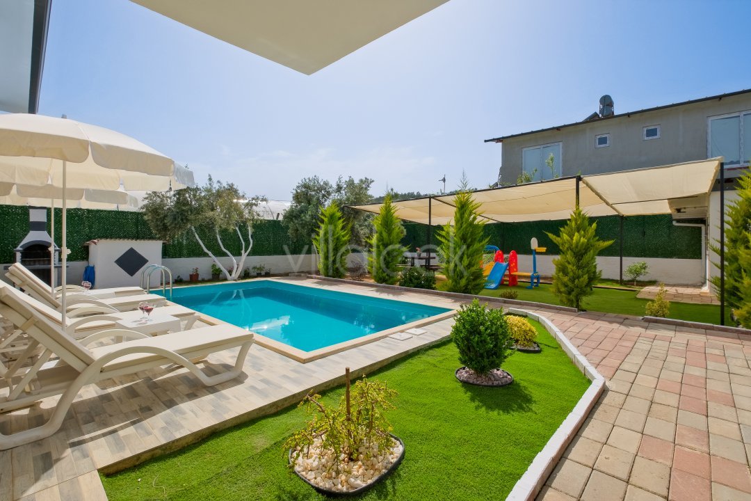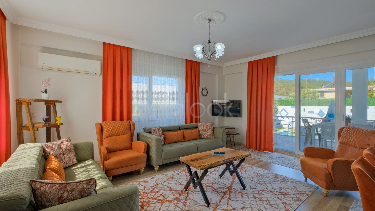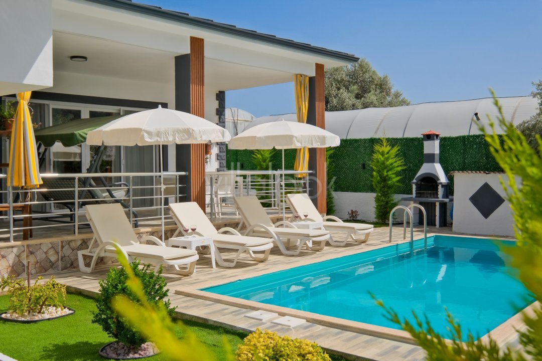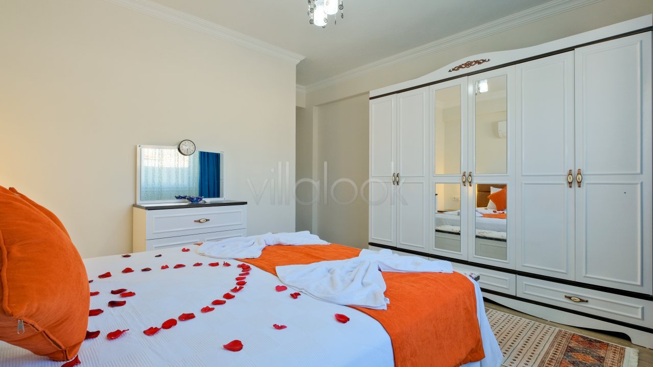 Villamızda 3 adet yatak odası ve 2 adet banyo bulunmaktadır. Birinci yatak odası içerisinde bir adet çift kişilik yatak, ebeveyn banyosu ve klima; ikinci yatak odası içerisinde bir çift kişilik yatak ve klima; üçüncü yatak odasında ise iki adet tek kişilik yatak ve klima mevcuttur. Ortak alanda ise açık mutfak salon, klima, WC-banyo ve TV bulunmaktadır. Villamız maksimum 6 kişilik konaklama kapasitesine sahiptir.