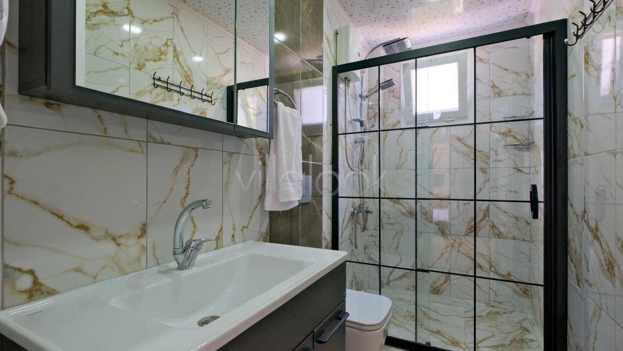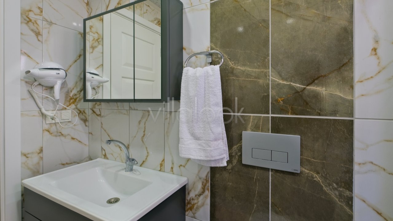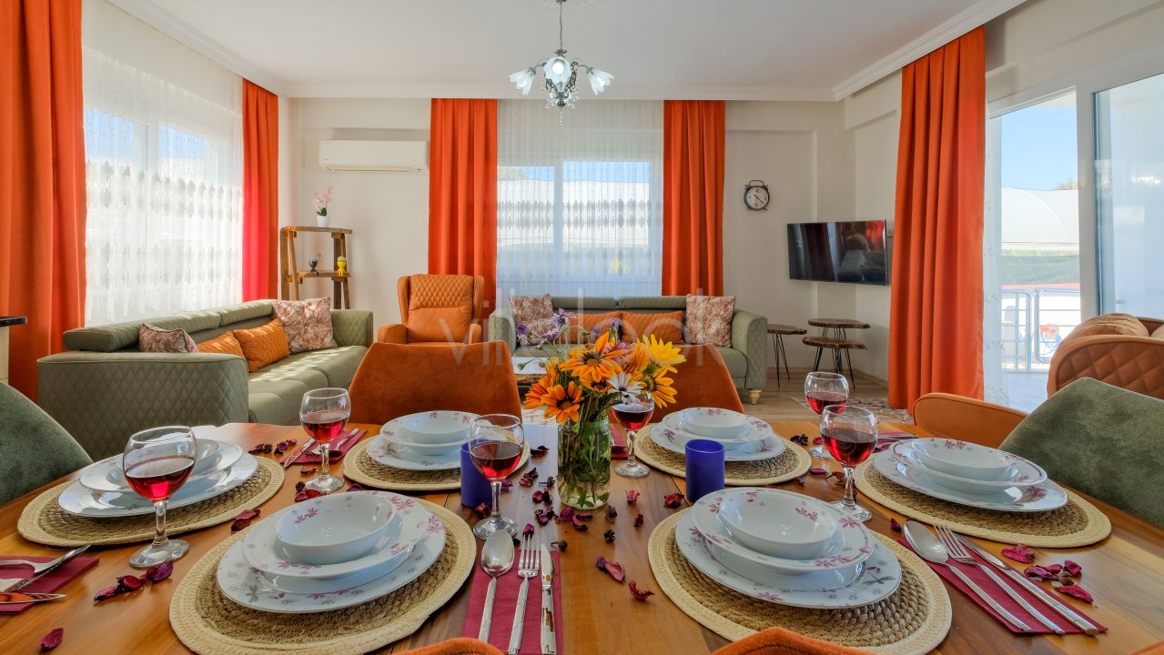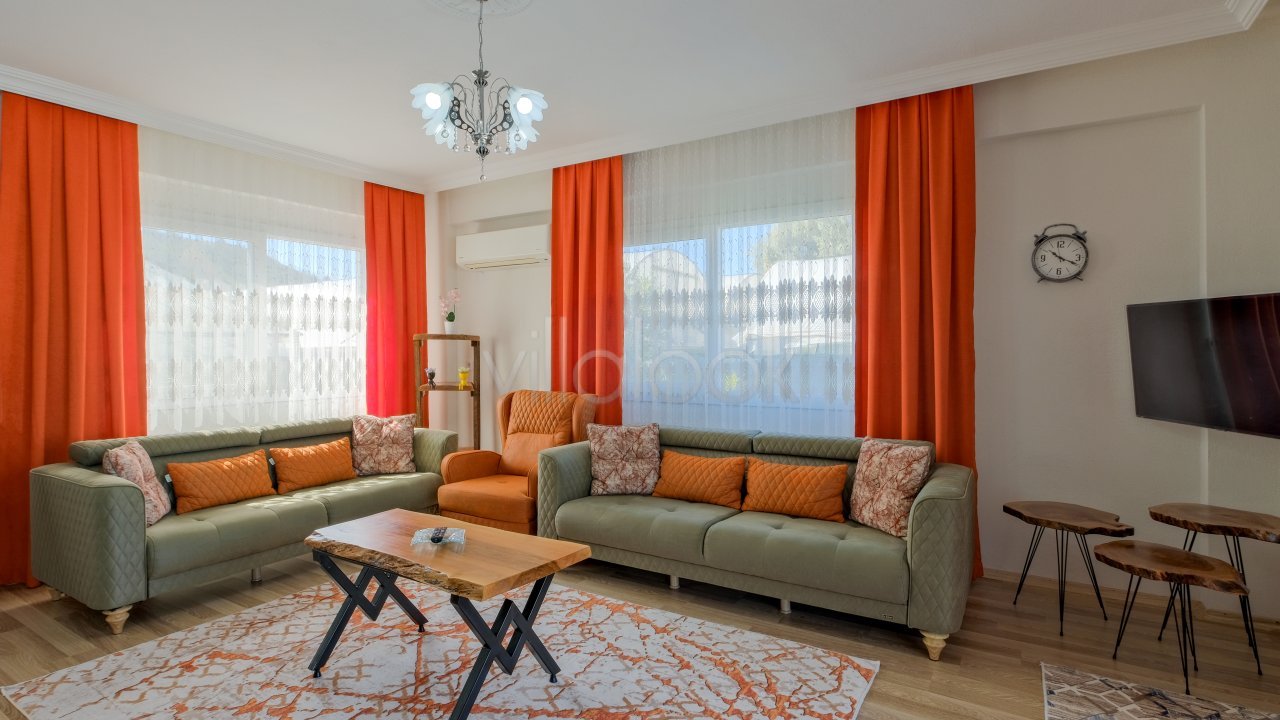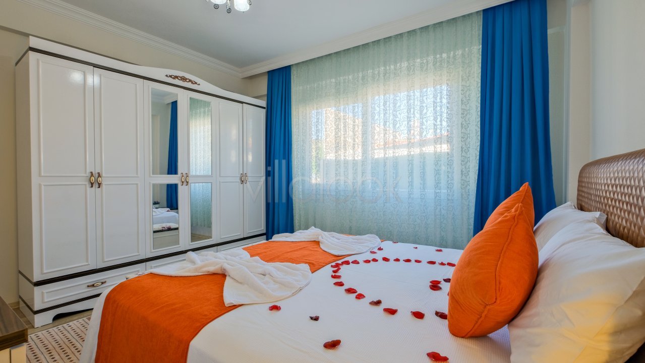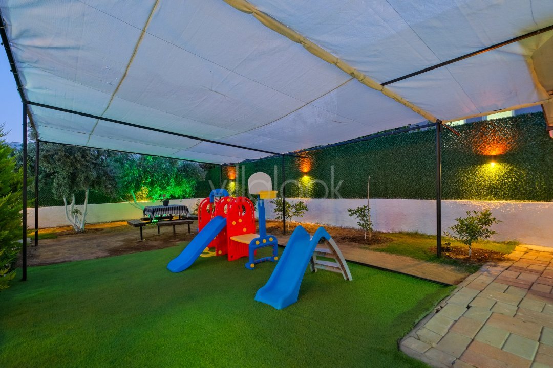 Villamızda 3 adet yatak odası ve 2 adet banyo bulunmaktadır. Birinci yatak odası içerisinde bir adet çift kişilik yatak, ebeveyn banyosu ve klima; ikinci yatak odası içerisinde bir çift kişilik yatak ve klima; üçüncü yatak odasında ise iki adet tek kişilik yatak ve klima mevcuttur. Ortak alanda ise açık mutfak salon, klima, WC-banyo ve TV bulunmaktadır. Villamız maksimum 6 kişilik konaklama kapasitesine sahiptir.
