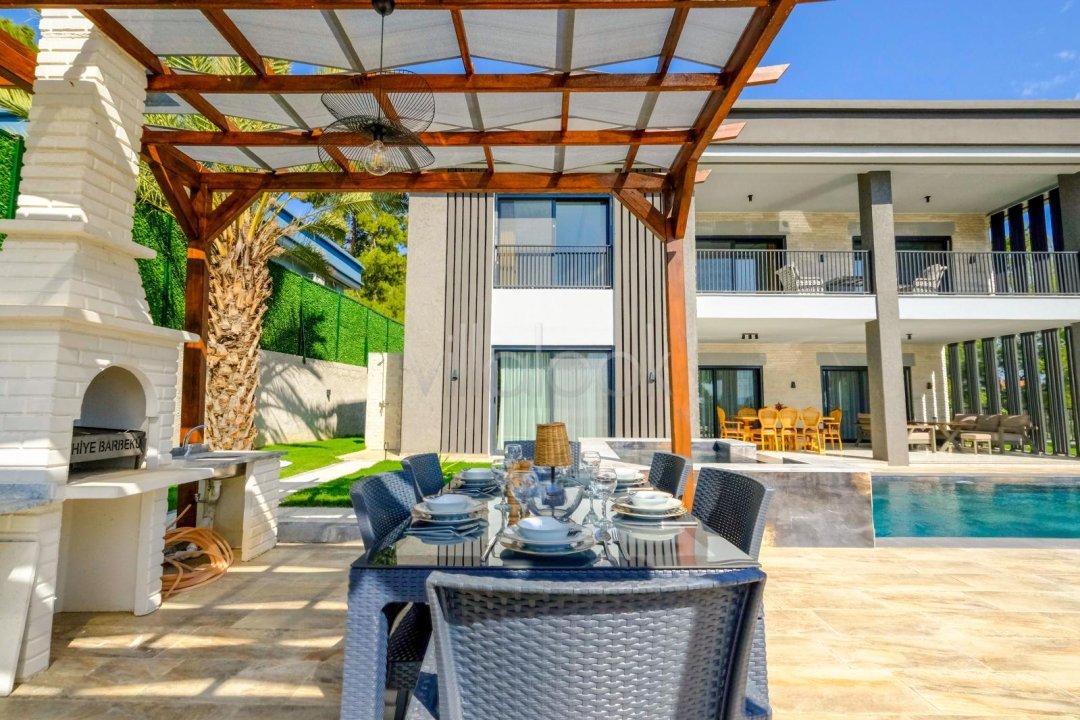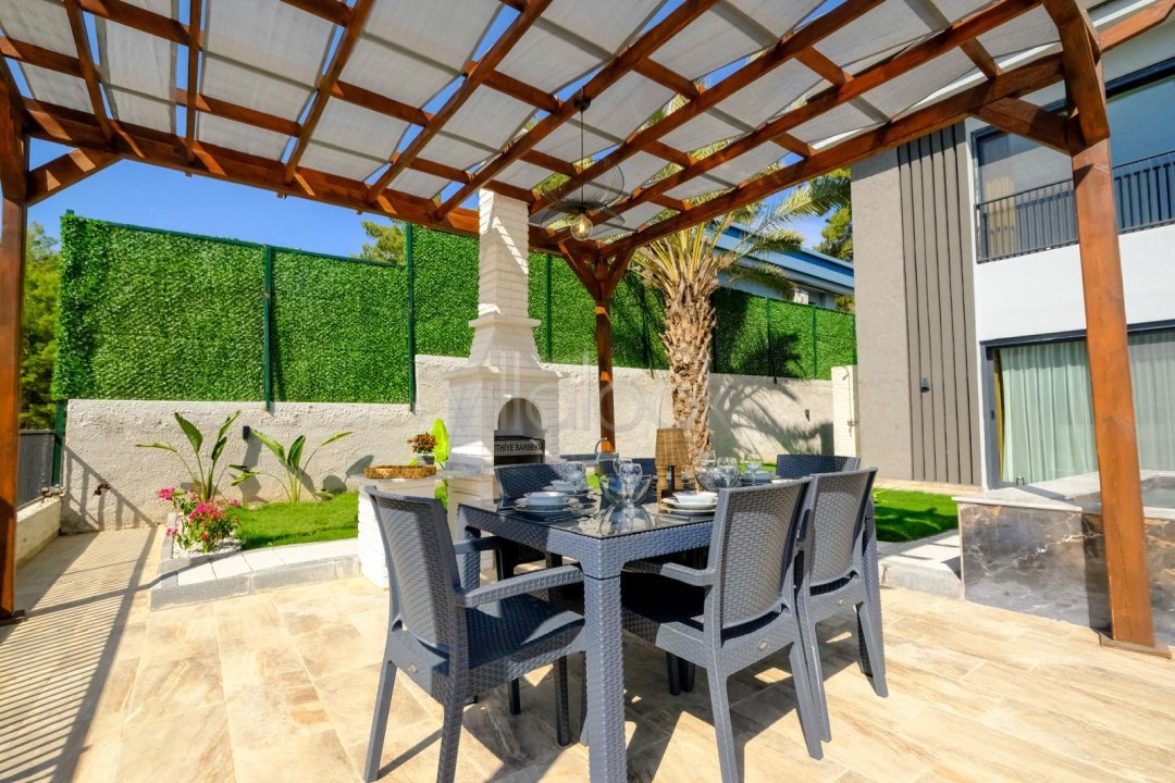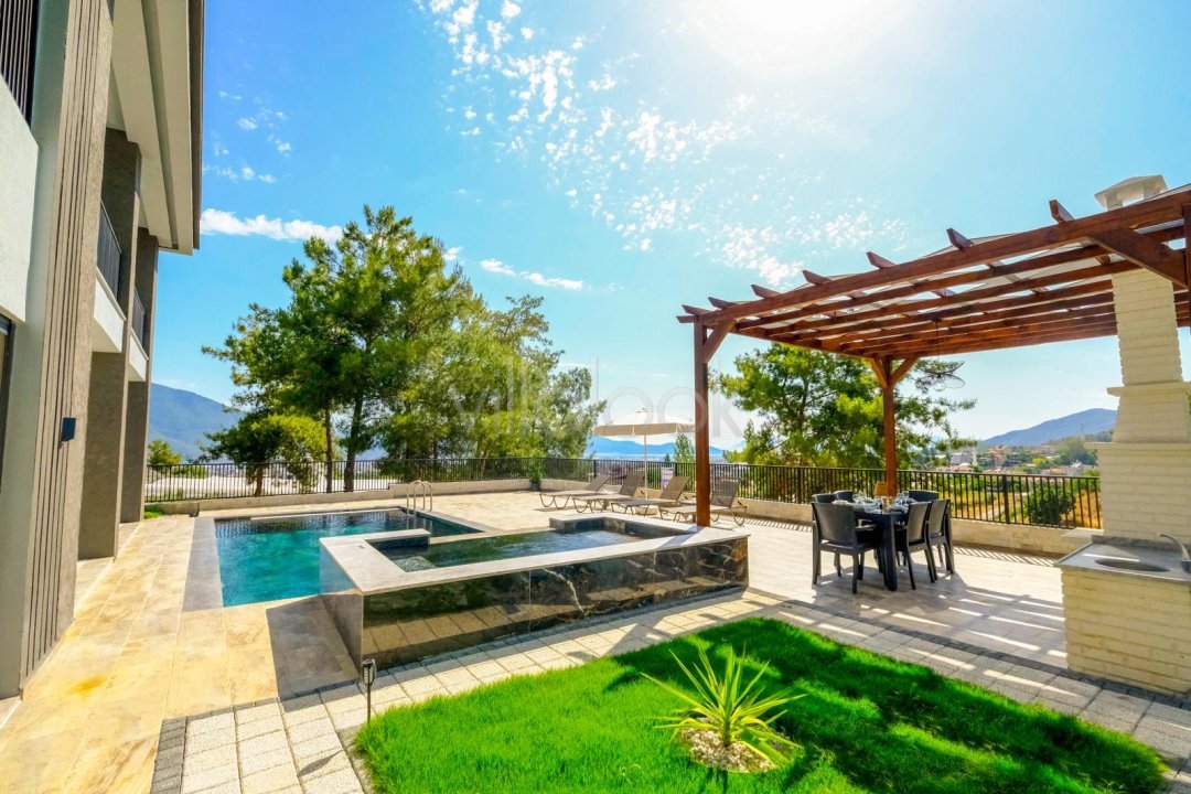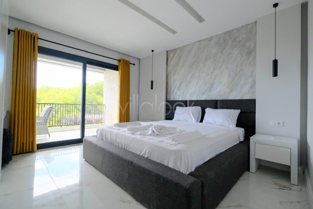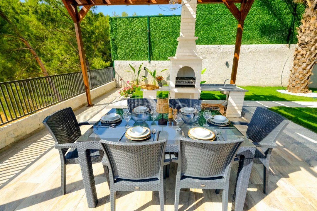 Villa Balcı Duo Fethiye Eldirek bölgesinde bulunan villamız lüks ve modern bir mimariye sahiptir. Eldirek bölgesinin yem yeşil manzarasını da aynı anda sizlere yaşatma imkanı sunmaktadır. 3 yatak odasından oluşup 6 kişi konaklama kapasitesine sahip olan villamızın siz değerli müşterilerini heyecan ile beklemektedir. 1. YATAK ODASI : 1 adet çift kişilik yatak, elbise dolabı, banyo, klima, Jakuzi bulunmaktadır. 2. YATAK ODASI : 1 adet çift kişilik yatak, elbise dolabı, banyo, klima, Fransız Küveti bulunmaktadır. 3. YATAK ODASI : 1 adet çift kişilik yatak, elbise dolabı, klima, bulunmaktadır. SALON : Oturma grubu, TV, yemek masası , klima bulunmaktadır. MUTFAK : Lüx ve modern mutfak içerisinde buzdolabı, bulaşık makinesi, çamaşır makinesi, yemek takımı, çatal-bıçak seti, tencere, tava, bardak ve diğer mutfak ekipmanları yer almaktadır. BAHÇE : Özel yüzme havuzu, şezlong , şemsiye, oturma grubu, özel barbekü alanı, yemek masası bulunmaktadır. Sağlanan Hizmetler Klima, elektrik, su, tüp gaz. Karşılama ve anahtar hizmeti. Bilgilendirme hizmeti 10 gün üzeri konaklamalarda ara temizlik çarşaf değişimi Ev, havuz ve bahçe bakımları Minimum konaklama süresi altında temizlik ücreti alınmaktadır. NOT: Günlük kampanyalardan faydalanmak için bize ulaşın NOT: Doğa içerisinde konumlu tüm villa ve yazlıklarda kelebek, böcek, karınca, sinek vs çıkma ihtimali vardır. Buna karşı düzenli olarak ilaçlanmaktadır. Bunot bu ev ile ilgili olmayıp doğa içerisinde konumlu tüm evlerimiz için geçerlidir. Villa giriş günü sizden hasar depozitosu alınacaktır. Bu ücret çıkış yapacağınız saatten 10 dakika önce yapılacak olan genel kontrolde herhangi bir aksaklık veya hasar olmaması durumunda tarafınıza iade edilir.