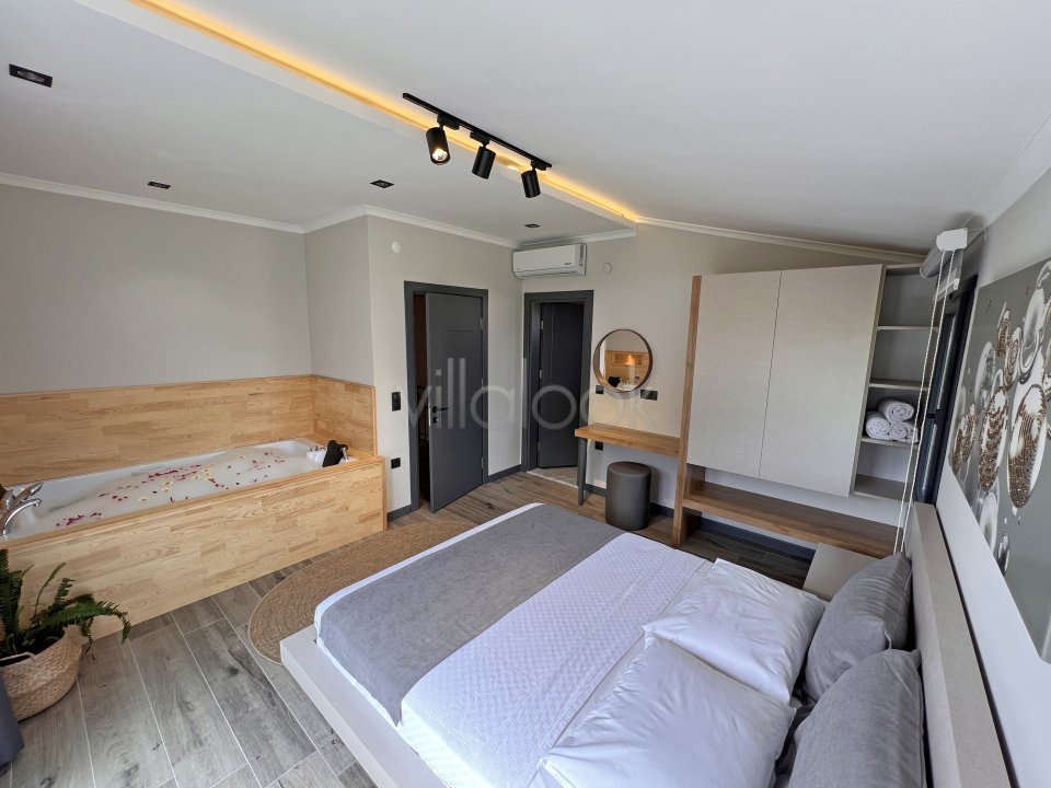 1. yatak odası : 1 çift kişilik yatak, WC + Duş, Klima, jakuzi