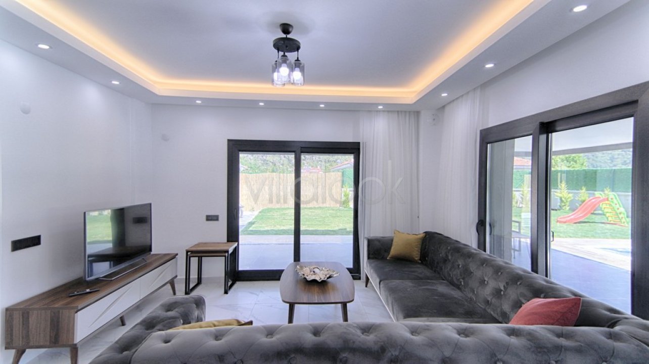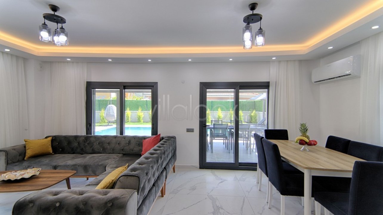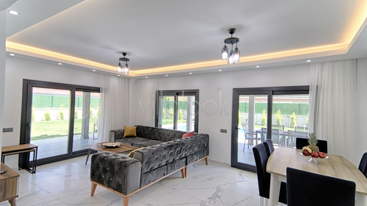 Salon : Zevkle tasarlanmış salonumuzda oturma grubu, TV,orta sehpa, klima, internet erişimi için wi-fi, havuz terasına çıkışbulunmaktadır.
