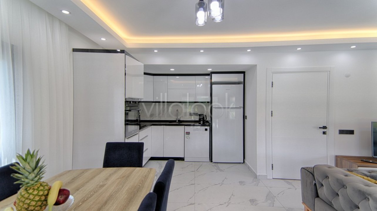 Mutfak : Amerikan mutfak tarzında dizayn edilmiş mutfaktayemek masası ve sandalyeler, bulaşık makinası, çamaşır makinası, buzdolabı,fırın, mikrodalga fırın, kettle, ankastre 4’lü ocak ve aspiratör, çaycı, tabak,tencere, mutfak araç gereçleri vs. bulunmaktadır.