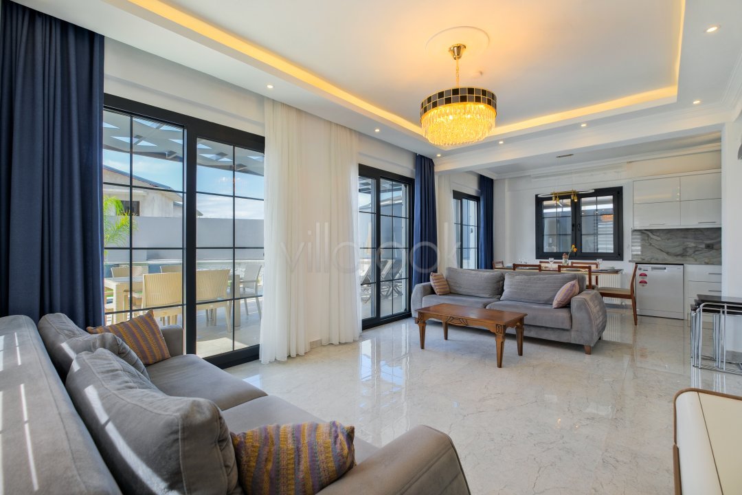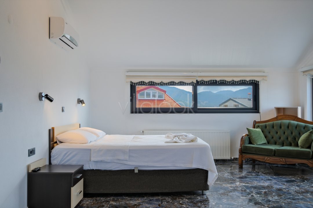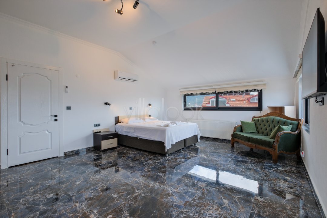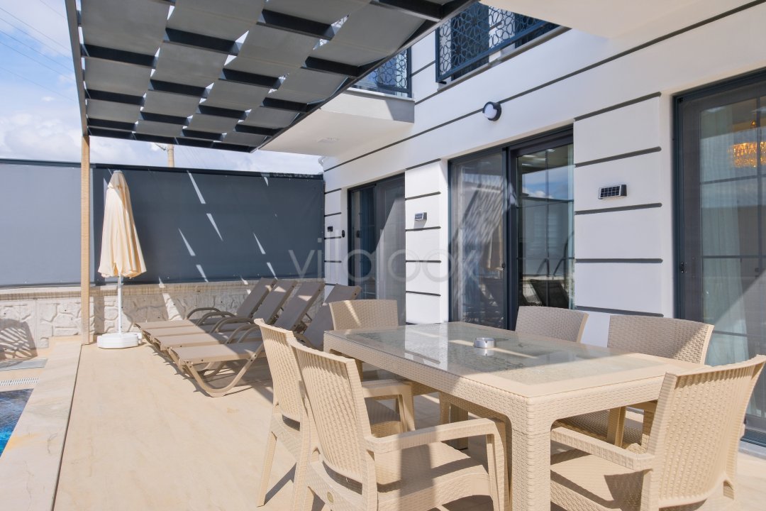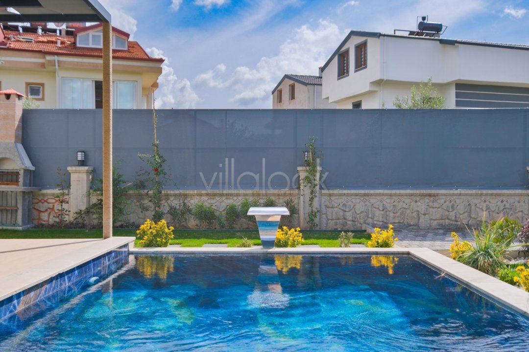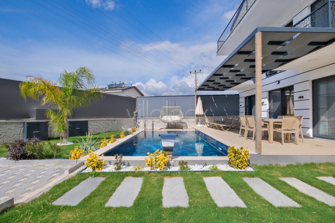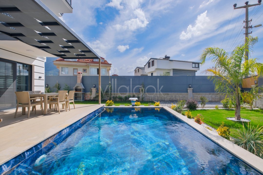 Fethiyede merkezi konuma sahiptir. 4 yatak odalı 8 kişi konaklama kapasitesinesahiptir. İç dizaynıyla oldukça lüks ve konforlu bir yapıyasahiptir. Bahçe terasına barbekü yer almaktadır. Lüks mimarisi veolanaklarıyla size unutulmaz bir tatil imkanı sunmaktadır. İçerisindesauna 1 adet jakuzi bulunmaktadır. Geniş aileler vearkadaş grupları için oldukça ideal lüks kiralık tatil villasıdır.