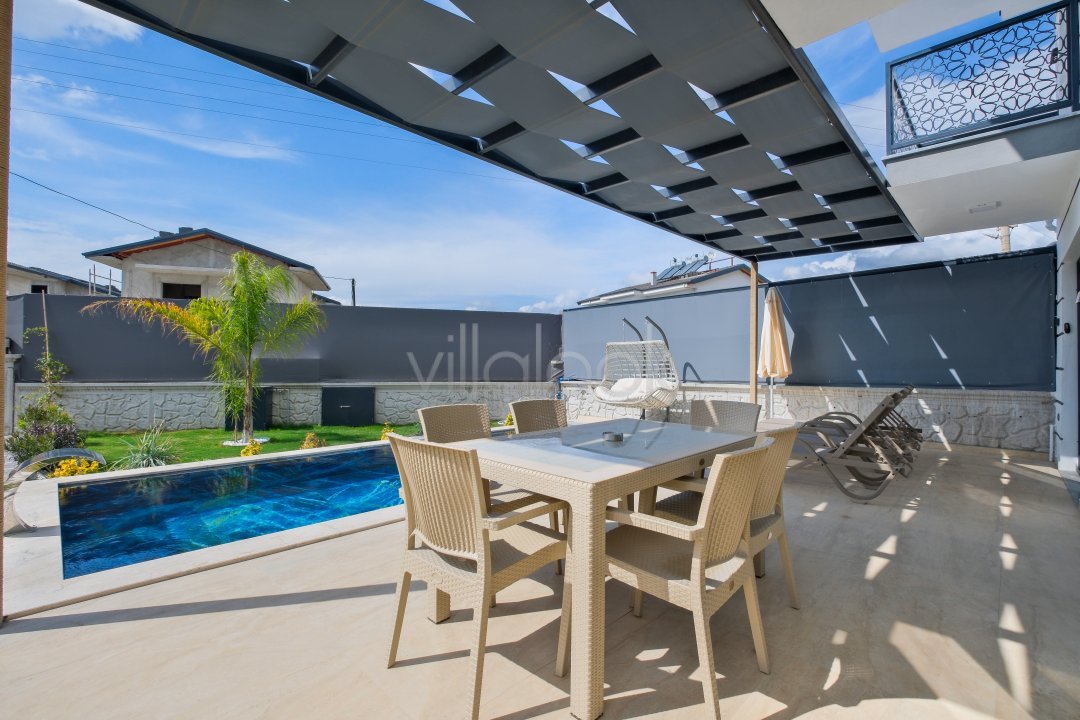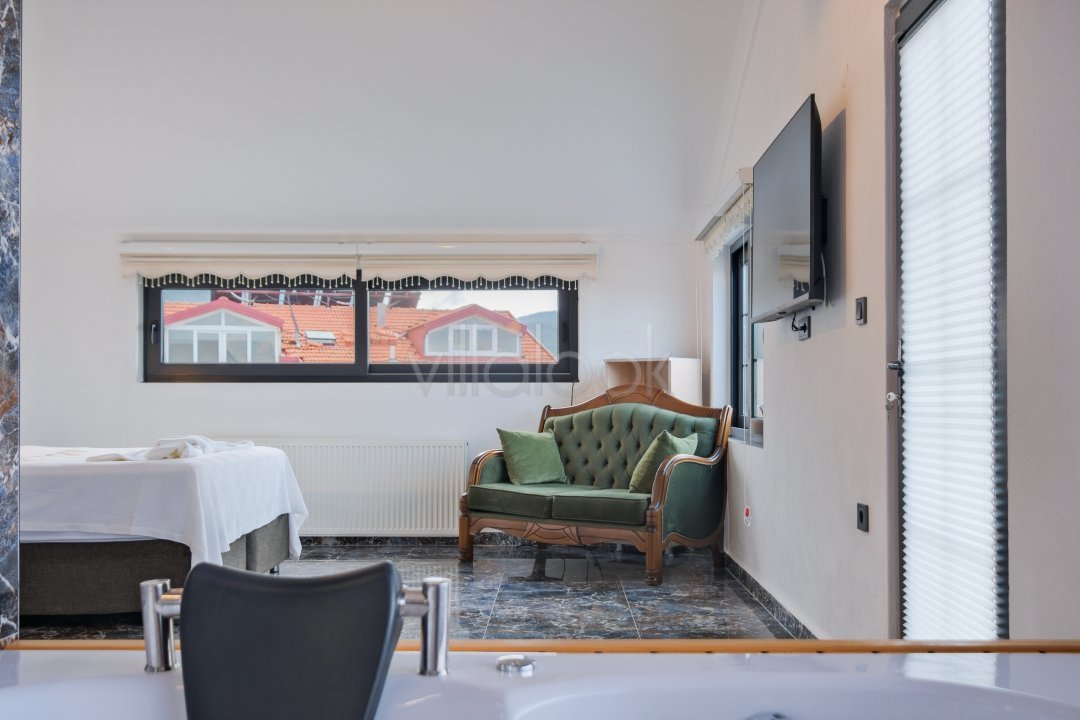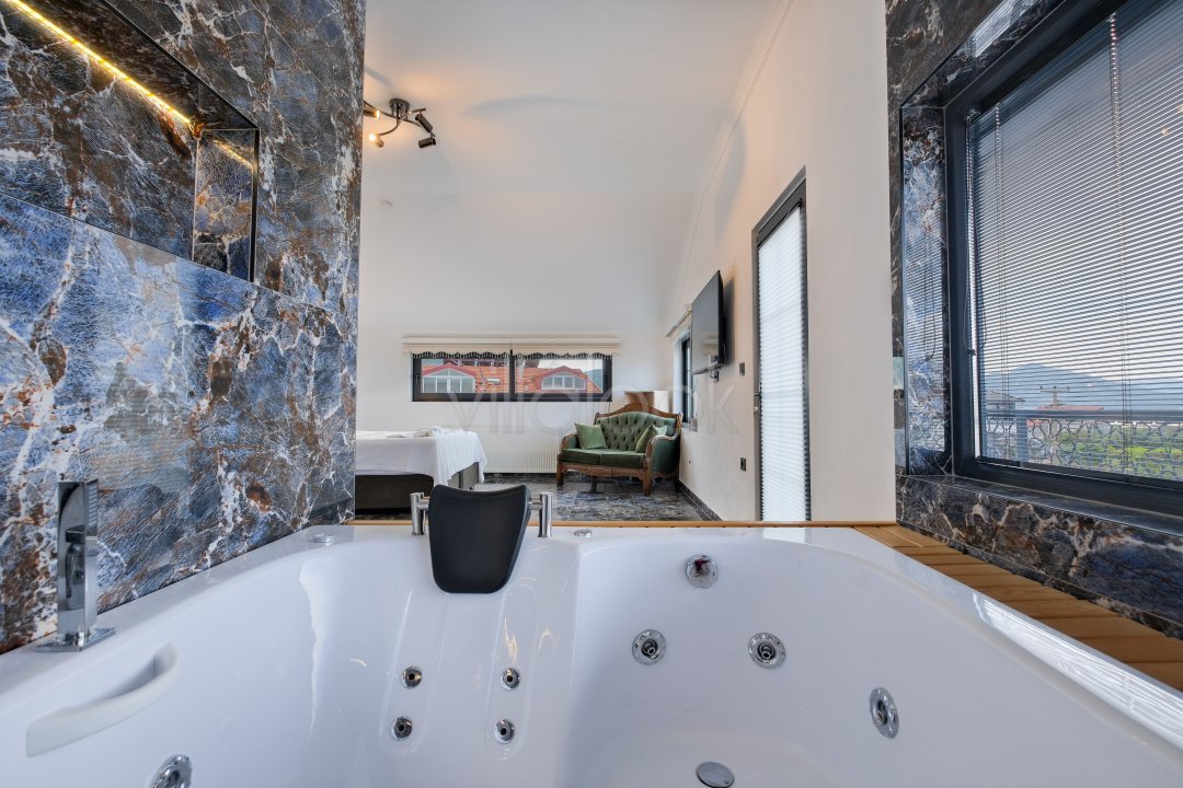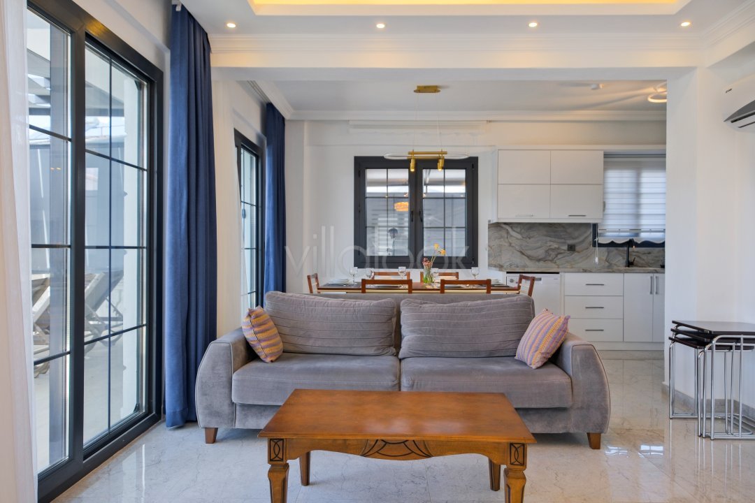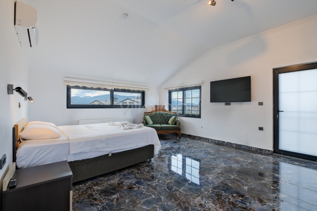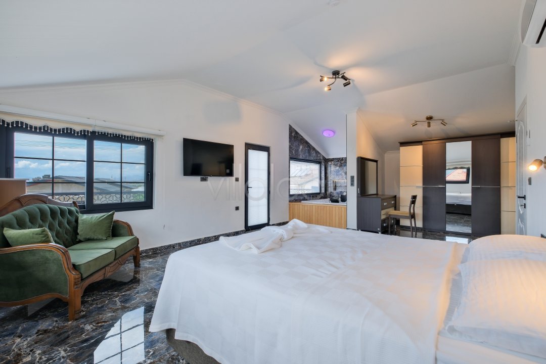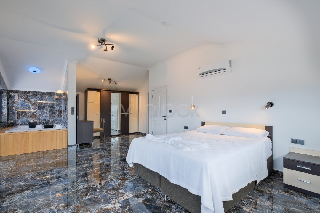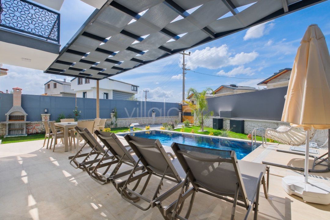 Fethiyede merkezi konuma sahiptir. 4 yatak odalı 8 kişi konaklama kapasitesinesahiptir. İç dizaynıyla oldukça lüks ve konforlu bir yapıyasahiptir. Bahçe terasına barbekü yer almaktadır. Lüks mimarisi veolanaklarıyla size unutulmaz bir tatil imkanı sunmaktadır. İçerisindesauna 1 adet jakuzi bulunmaktadır. Geniş aileler vearkadaş grupları için oldukça ideal lüks kiralık tatil villasıdır.