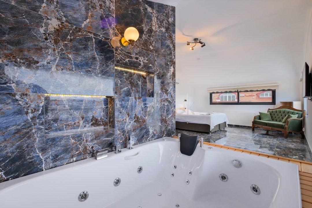 1.Yatak odası 1 çift kişilik yatak + komodin + elbise dolabı + makyaj masası +klima + ebeveyn banyo + jakuzi