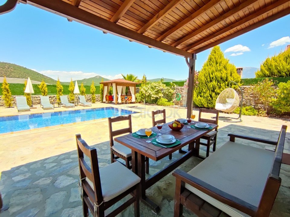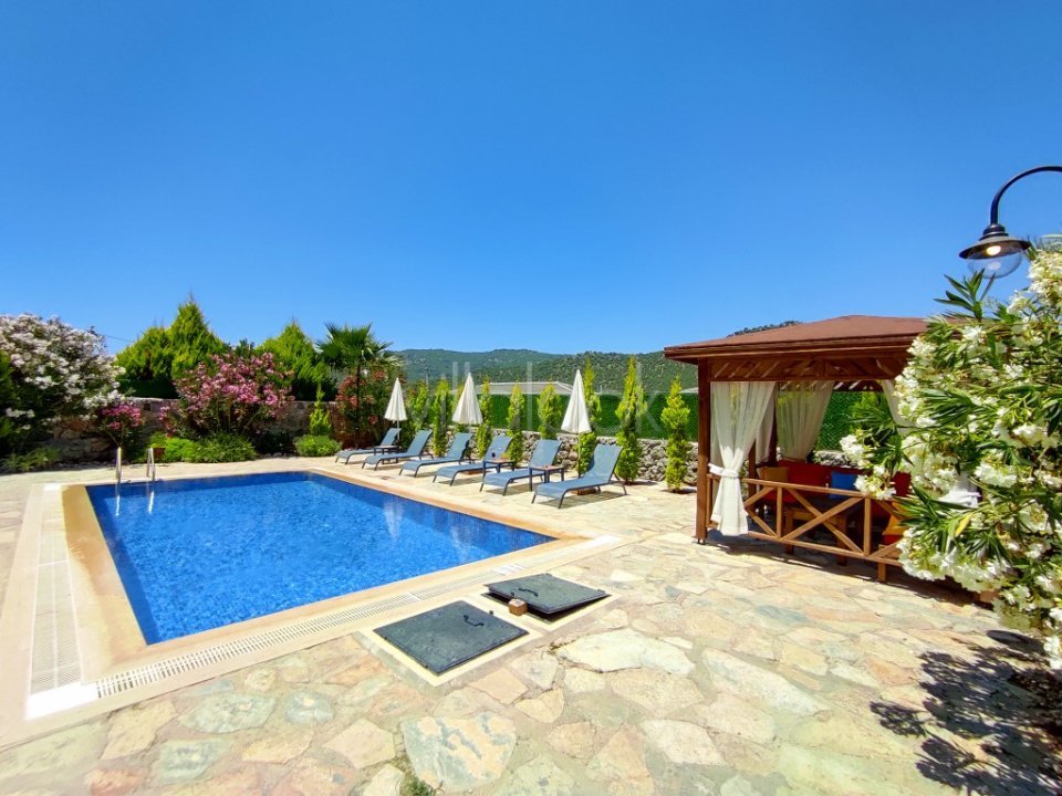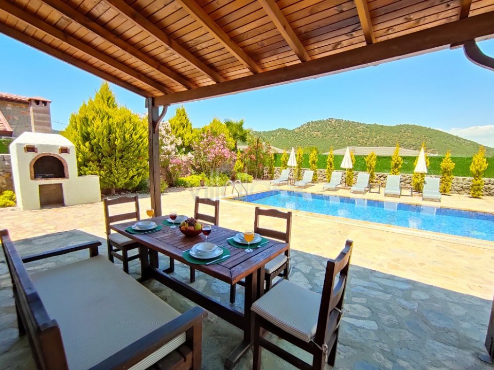 Villa Fethiye/Kayaköy bölgesinde bulunmaktadır. Müstakil havuzlu olan villamız taş mimarisi ile harika doğal bir görünüme sahiptir. 3 yatak odası ve 3 ebeveyn banyosuna sahiptir. Ayrıca giriş katında ortak kullanım wc mevcuttur. Villamızın sırtı yemyeşil ormana dayanmaktadır. Havuz başında bulunan oturma alanları ve bahçede bulunan mangal alanı ile tatil sürecinize keyif katabilirsiniz. Villa Tlos House 2 muhafazakar ve korunaklıdır ve size özel havuzu dışarıdan gözükmez. Dünyaca ünlü ve tarihi rum evleriyle meşhur Kayaköy Antik Kentine 2 km Gemiler Plajına 5 km mesafededir. Doğa ile iç içe olan villa etrafını çevreleyen doğa ile misafirlerimize en huzurlu tatil günlerini geçirmesi için hazır durumdadır. Aynı villadan yan yana 4 adet mevcuttur. Kalabalık aile ve arkadaş grupları dilerse yan yana kiralayabilirler.
