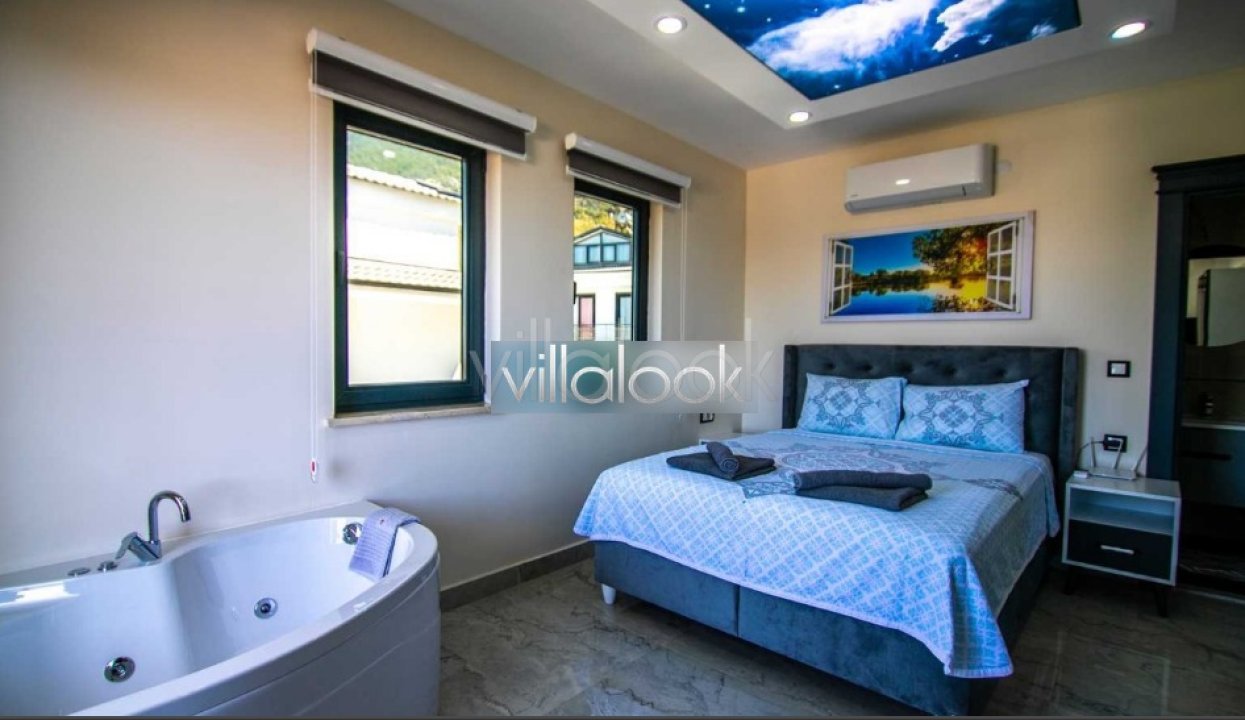Fethiye Ovacık bölgesinde yapımı yeni tamamlanan Villa Dede A, içerisinde bulunan hamam, sauna ve kapalı havuz gibi özellikleri sayesinde konforlu ve dindirici bir tatil geçirmeniz için özenle tasarlanmıştır. Yemyeşil bahçesi ve bahçesinde yer alan salıncak, barbekü ve özel yüzme havuzu güzel bir villa tatili geçirmeniz için villamızda yer alır. 4 yatak odası ve 8 kişilik konaklama kapasitesine sahip Villa Dede A, kalabalık aileler için de harika bir tercihtir.