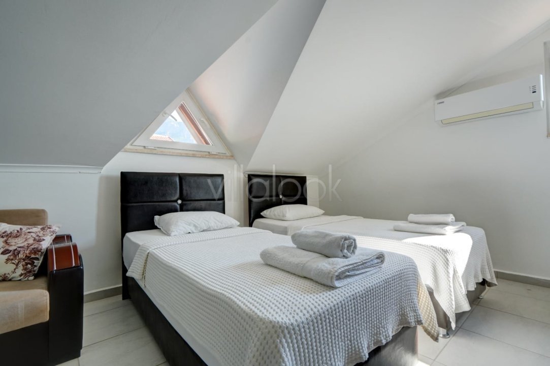 5.Yatak Odası : Genç Yatak odası 2 adet tek kişilik yatak,elbise dolabı, klima, makyaj masası, teras, banyo (salonda)