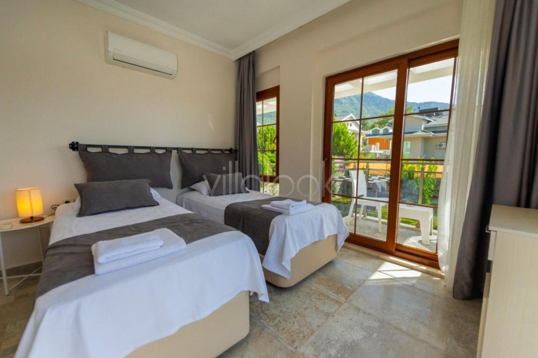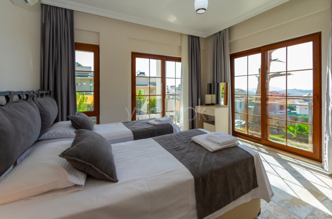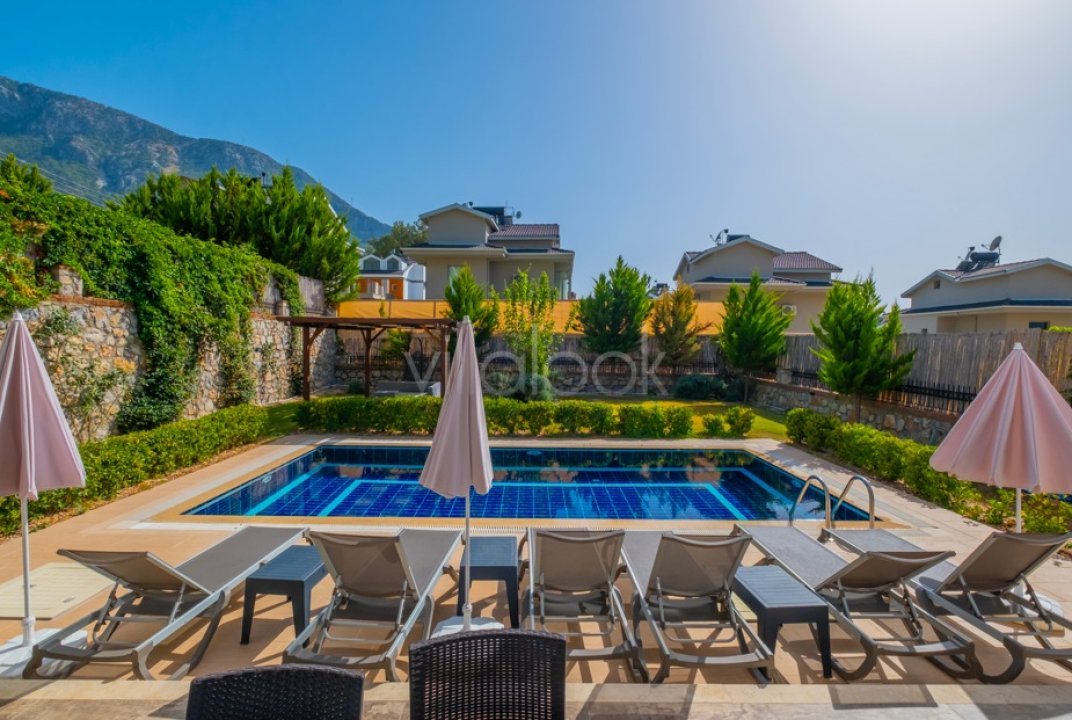 Villa Mortek 2 tarihi ve doğasıyla eşsiz bir atmosfere sahip olan Fethiye,Ovacık'ta bulunmaktadır. Doğa manzaralı, müstakil, havuzu korunaklı villamız 4adet yatak odası ve 5 adet banyoya sahip olup toplamda 8 kişi konaklama kapasitelidir. Yatak Sayısı: 6adet, Mutfak : Amerikan mutfak, buzdolabı, bulaşık makinesi, çamaşır makinesi, fırın, 4'lü ocak, türk kahve makinesi, kettle( çaycı) ve 5 kişilik yemek takımı bulunmaktadır. Salon :Oturma grubu, klima, LCD Tv, 5 kişilik yemek masası, ütü, ütü masası, uydu alıcısı, internet ve terasa çıkış bulunmaktadır. Havuzve Bahçe : Etrafı ağaçlar ile çevrili korunaklı yüzme havuzu, dış jakuzi, şezlong, şemsiye, barbekü, veranda, bahçe oturma grubu, masa ve sandalye bulunmaktadır. Bahçe vehavuz bakımı günde 1 kez sabah veya akşam yapılır. %100görünmeme garantisi vermemekteyiz. Bu villalarımızda her zaman %5 sakınma payımevcuttur. Sağlanan Hizmetler Klima, elektrik, su, tüp gaz. Karşılama ve anahtar hizmeti. Bilgilendirme hizmeti 10 gün üzeri konaklamalarda ara temizlik çarşaf değişimi Ev, havuz ve bahçe bakımları Minimum konaklama süresi altında temizlik ücreti alınmaktadır. NOT: Günlük kampanyalardan faydalanmak için bize ulaşın NOT: Doğa içerisinde konumlu tüm villa ve yazlıklarda kelebek, böcek, karınca, sinek vs çıkma ihtimali vardır. Buna karşı düzenli olarak ilaçlanmaktadır. Bunot bu ev ile ilgili olmayıp doğa içerisinde konumlu tüm evlerimiz için geçerlidir. Villa giriş günü sizden hasar depozitosu alınacaktır. Bu ücret çıkış yapacağınız saatten 10 dakika önce yapılacak olan genel kontrolde herhangi bir aksaklık veya hasar olmaması durumunda tarafınıza iade edilir.