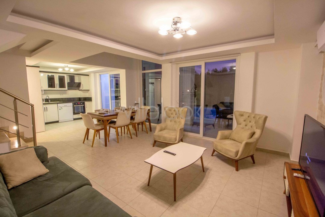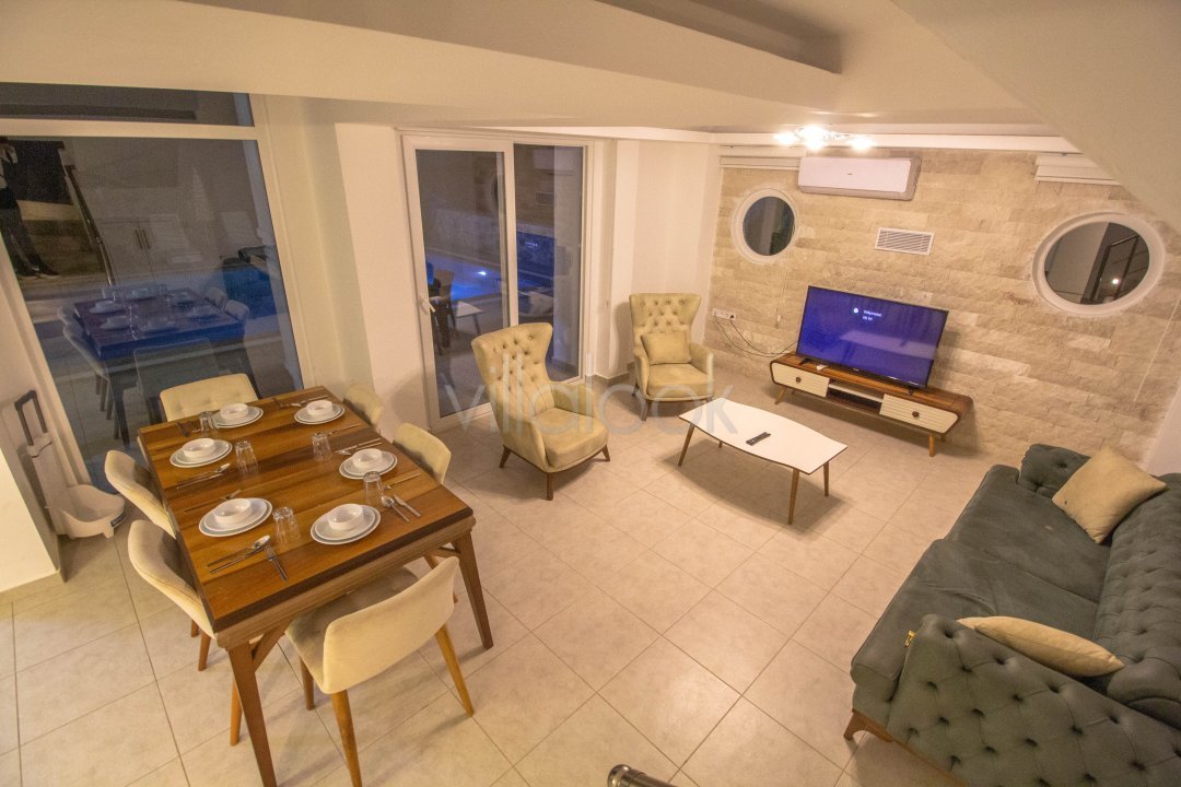 Villa Damla 8 kişi konaklamakapasitesine sahiptir. Ovacık bölgesinde yer alan villamız doğa ile iç içehuzurlu bir tatil imkanı sunmaktadır.Salon bölümünde oturma grubu, yemek masasıve sandalyeler, LCD Tv, klima bulunmaktadır. Salondan havuz kenarına kolaylıklageçiş sağlayabilirsiniz.Mutfak bölümünde açık plan şeklindeki mutfağımızdatatiliniz boyunca ihtiyaçlarınızı karşılayabilecek özenle hazırlanmış her türlümutfak araç gereci ve elektronik eşya bulunmaktadır. Havuz bölümünde Genişbahçe içerisinde villaya ait özel havuz bulunmaktadır.