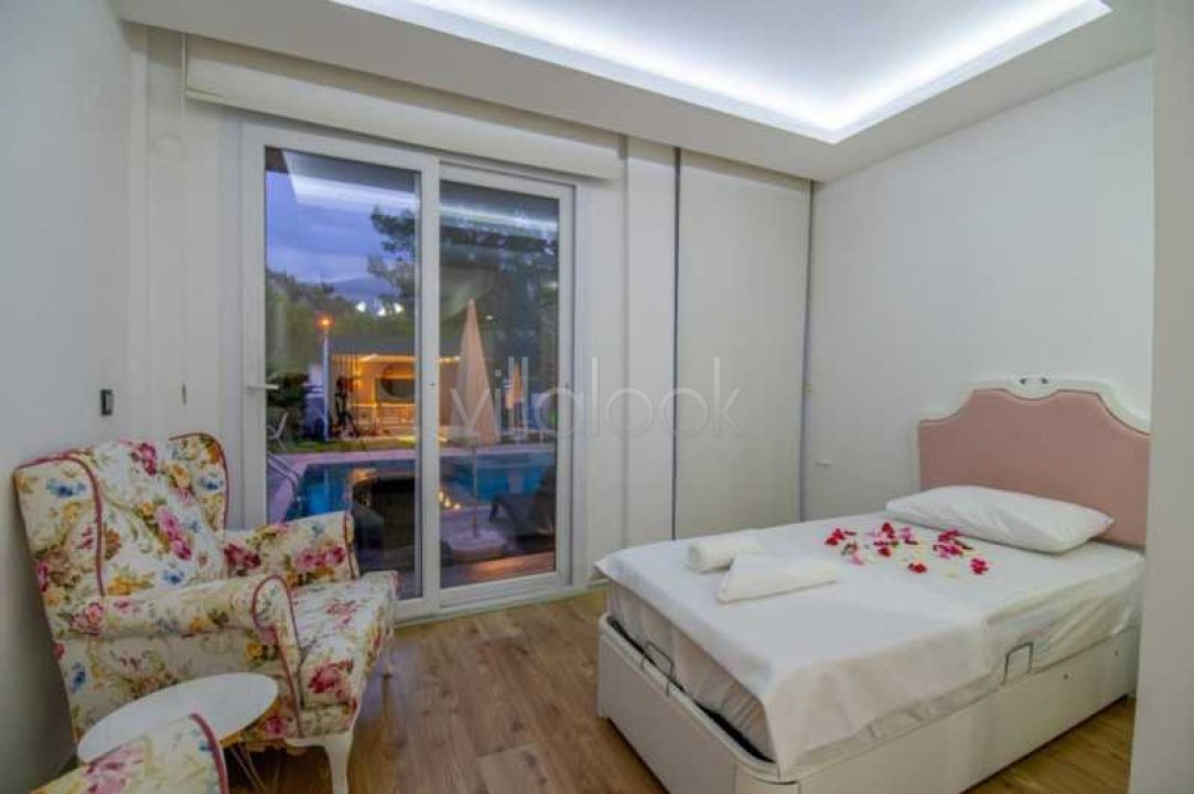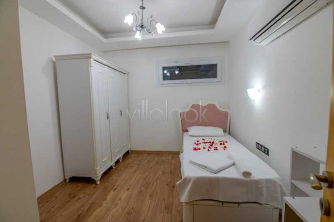 6. Yatak Odası : Klimalı yatak odasında 2 adet tek kişilik yatak, elbise dolabı, komodin ve katta (ortak) banyo bulunmaktadır.