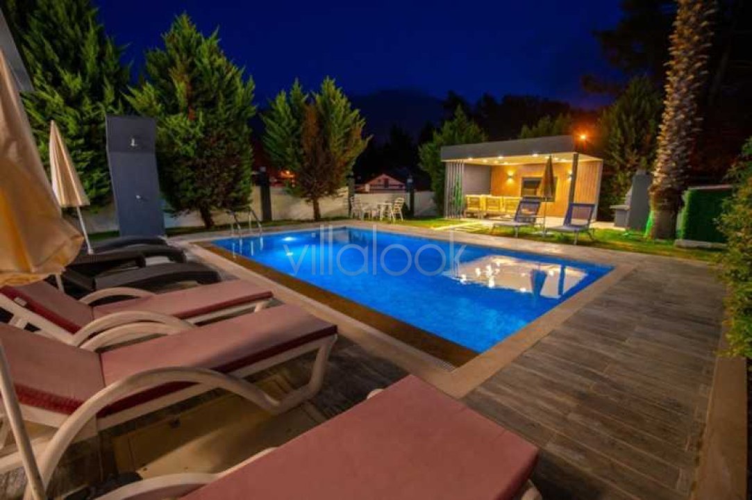 Villa Kibar, Fethiye Öludeniz mevkiinde bulunan 6 yatak odali villamızın, 2`si ensuit toplam 5 adet banyo ve tuvaleti ile 12 yetiskinin rahatlıkla konaklayabileceği Hisarönü merkeze sadece 750m. mesafede yer alan benzersiz bir villadır. Konumu itibariyle dağ ve çam ormanlarının içerisin de yer alan Villa harika Babadağ manzarasına sahiptir.