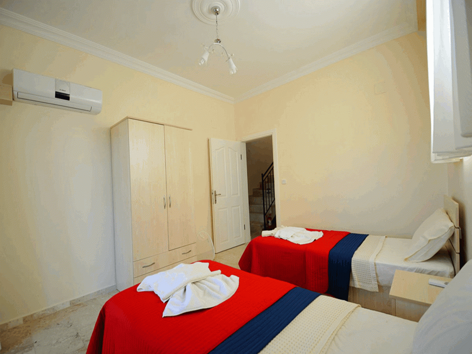 Detayları: 2 Adet tek kişilik yatak, Komodin,Klima, Elbise dolabı, Banyo, Havuz terasına çıkış ve Havuz cepheli balkon bulunmaktadır.